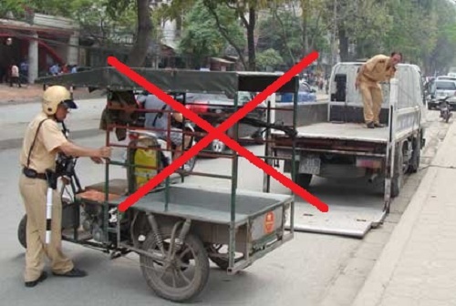 Từ ngày 1/1/2010, các phương tiện xe 3 – 4 bánh thô sơ, tự chế đã bị cấm lưu thông trên toàn theo nghị nghị quyết 32 của Nhà nước. Ngoài ra, tại những thành phố lớn đã ra nhiều quy định và biện pháp đối với loại phương tiện nay. Như là ở Hà Nội đã cấm xe ba bánh hoạt động từ 1/7/2018